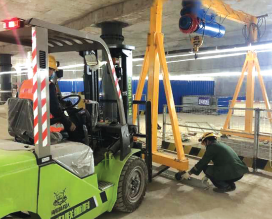 2月25日,记者从贵阳轨道集团获悉,近日贵阳地铁2号线一期车站装修及机电工程五标工程项目部,在从严从细做好疫情防控的前提下,统筹推进复工复产,目前已正式复工。图为施工人员正在开展材料吊装作业。