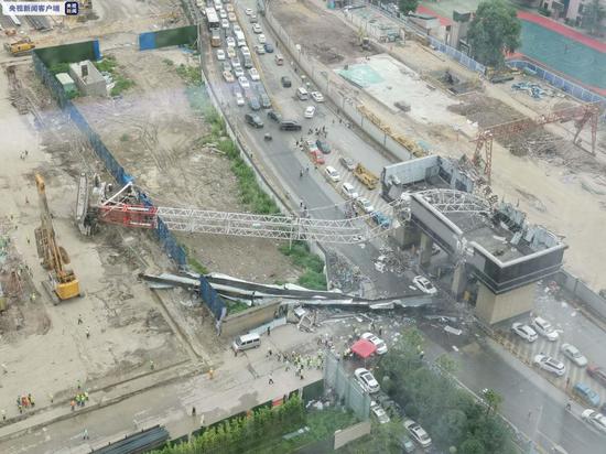 武汉一工地塔吊倒塌致车辆被压 有人员受伤