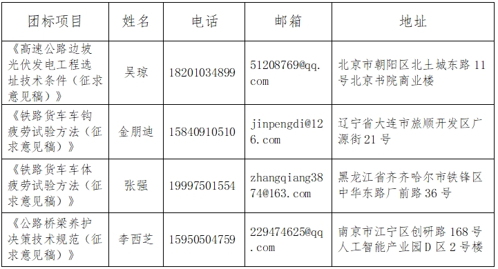 请各有关单位及专家认真审阅标准文本,对各标准提出意见和建议,于2025年10月15日(星期三)前将《团体标准征求意见反馈表》以电子邮件或信函邮寄至联系人。逾期不回复,按无异议处理。对比较重大的意见,应当说明论据或提出技术经济论证。