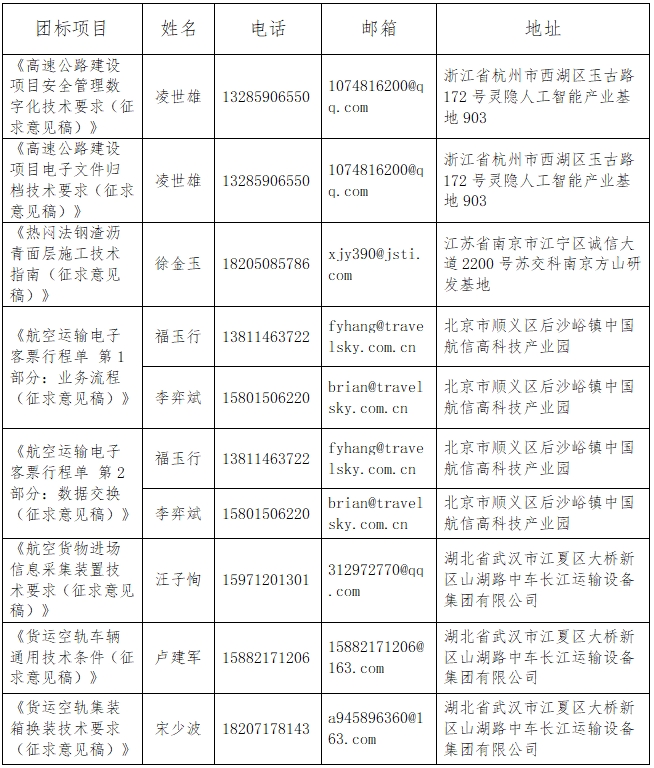 中国交通运输协会关于征求《高速公路建设项目安全管理数字化技术要求(征求意见稿)》等8项团体标准意见的函