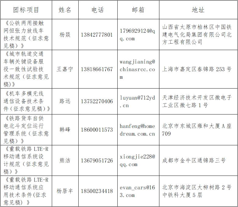 中国交通运输协会关于征求《公铁两用接触网恒张力放线车技术规范(征求意见稿)》等6项团体标准意见的函