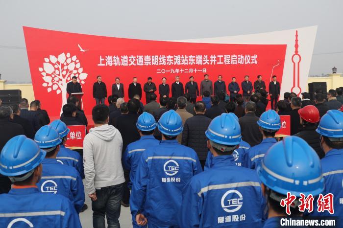 中新网上海12月11日电(记者 张亨伟)11日,在位于上海崇明区的陈家镇贝云路与繁郁路交界处的施工现场,彩旗招展,人头攒动,大型作业机械齐聚,随着一声令下,现场的挖掘机等施工设备同时开动,吹响了施工的号角,这也标志着为了配合崇明区规划中贝云路与繁郁路的建设,上海轨道交通崇明线东滩站东端头井开始启动建设。