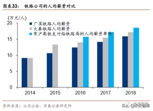 2016 至 2018 年,广深铁路与大秦铁路的人均薪资复合增速约为 13.0%和 10.7%;同期, 京沪高铁公司支付给地方铁路的人工薪资单价复合增速约 8.7%。据京沪高铁招股书,委 托运输管理费 6.5%的增长率,考虑了人工费与其他费用的权重以及过去三年的涨幅。