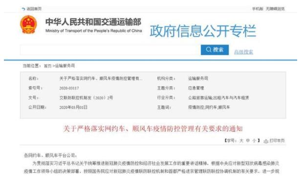 关于严格落实网约车、顺风车疫情防控管理有关要求的通知